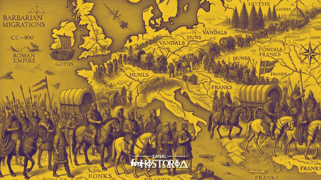 As Migrações Bárbaras foram um período de movimentação massiva de povos germânicos e outros grupos, ocorrendo aproximadamente entre os séculos IV e VIII, que resultou na formação de novos reinos na Europa.